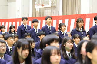 式では、合唱同好会によって校歌が紹介され(伸びやかな歌声が体育館に響き渡りました)、